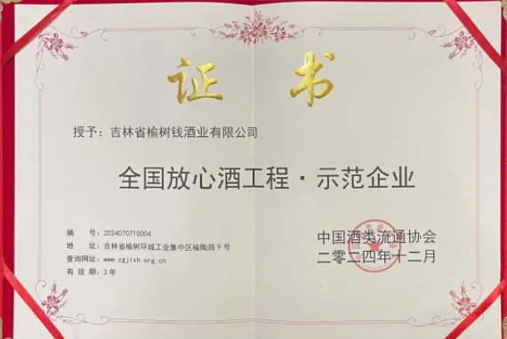 匠心鑄就品質(zhì)典范|榆樹錢酒業(yè)再度蟬聯(lián)“放心酒工程示范企業(yè)”殊榮